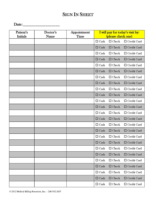 As I’ve stated before, with a little extra effort on the part of your front desk staff, it’s easy to increase front desk collections and reduce patient receivables. Many front office personnel don’t like to ask for money at the time of service, but it becomes a little easier to begin the conversation with the help of the new sign in form we have designed, which brings up the topic of payment without your front desk staff having to say one word. Mind you, it’s still up to the provider or administrator to institute and enforce a new policy calling for this method of collection effort to be followed, but it does become less distasteful if staff approach the conversation with the help of this new tool.